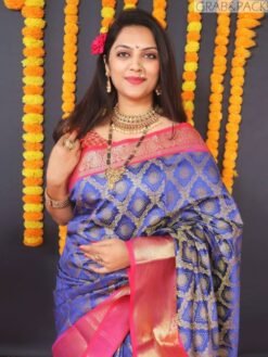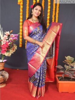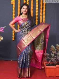 Navy Blue Kanchipuram Silk Saree at grabandpack.com gnp012581