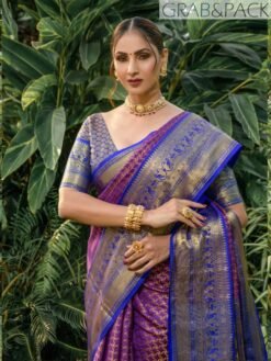 Buy Bollywood Style Purple kanchipuram silk saree gnp012518 – GrabandPack