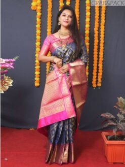 Attractive Navy Blue Celebrity Look Lichi Silk Saree gnp012520 – GrabandPack