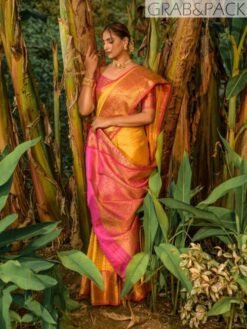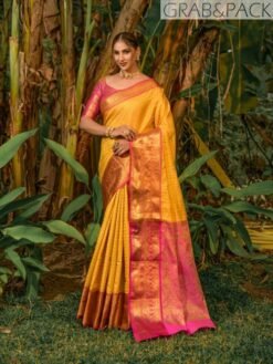 Buy Ethnic Yellow Kanchipuram Saree For Women Online GNP012512 – GrabandPack