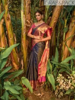 Ladies Blue Kanchipuram Silk Saree, With Blouse Piece gnp012514 – GrabandPack