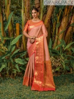 Ladies Peach Kanchipuram Silk Saree, With Blouse Piece gnp012515 – GrabandPack