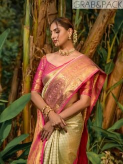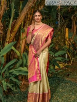 Buy Off White Kanchipuram Silk Saree. SKU. GNP012511 – GrabandPack