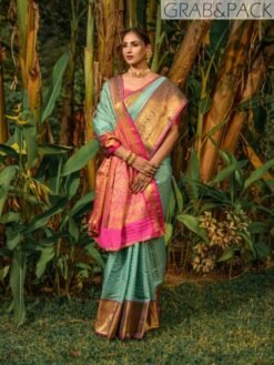 Kanchipuram wedding silk saree in Sea Green gnp012510 – GrabandPack